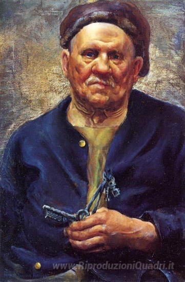 Ti offriamo una riproduzione artigianale su tela dell'opera famosa 'Borgomastro con chiave' di Ivan Albright, dal Museo delle Riproduzioni.