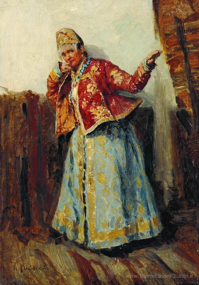 Ti offriamo una riproduzione artigianale su tela dell'opera famosa 'Boyaryshnya' di Konstantin Makovsky, dal Museo delle Riproduzioni.