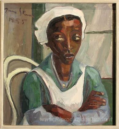 Ti offriamo una riproduzione artigianale su tela dell'opera famosa 'Cameriera in uniforme' di Irma Stern, dal Museo delle Riproduzioni.