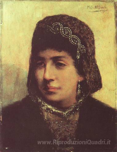 Ti offriamo una riproduzione artigianale su tela dell'opera famosa 'Capo di una sposa ebrea' di Maurycy Gottlieb, dal Museo delle Riproduzioni.