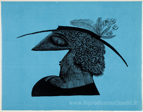 Ti offriamo una riproduzione artigianale su tela dell'opera famosa 'Capo' di Saul Steinberg, dal Museo delle Riproduzioni.