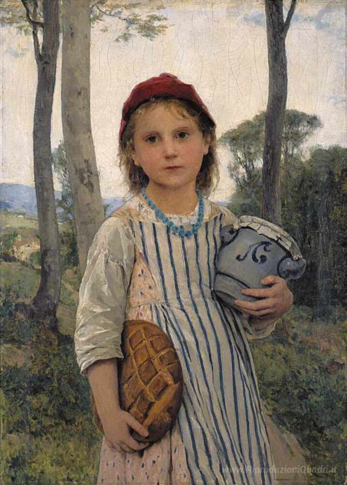 Ti offriamo una riproduzione artigianale su tela dell'opera famosa 'Cappuccetto Rosso' di Albert Anker, dal Museo delle Riproduzioni.