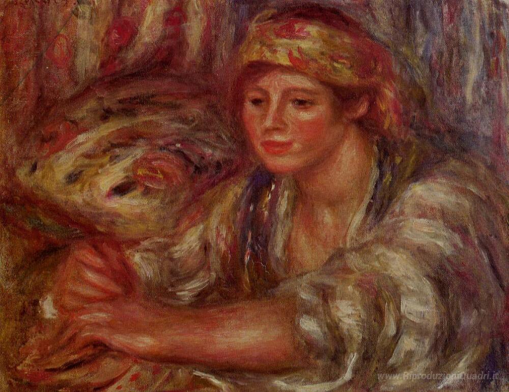 Ti offriamo una riproduzione artigianale su tela dell'opera famosa 'Carte DONNA CHE GIOCA' di Pierre-Auguste Renoir, dal Museo delle Riproduzioni.