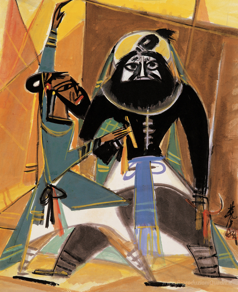 Ti offriamo una riproduzione artigianale su tela dell'opera famosa 'Cifre Opera' di Lin Fengmian, dal Museo delle Riproduzioni.