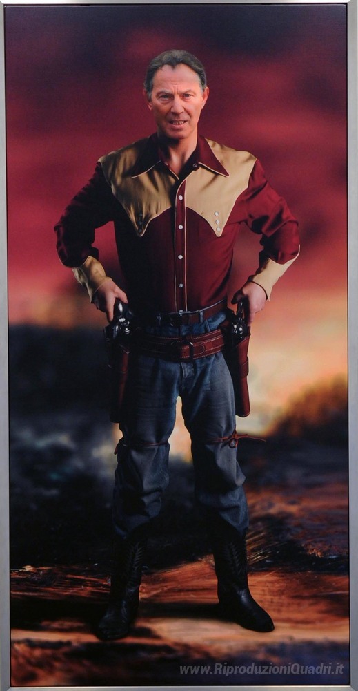 Ti offriamo una riproduzione artigianale su tela dell'opera famosa 'Colpisci e terrorizza' di Richard Hamilton, dal Museo delle Riproduzioni.