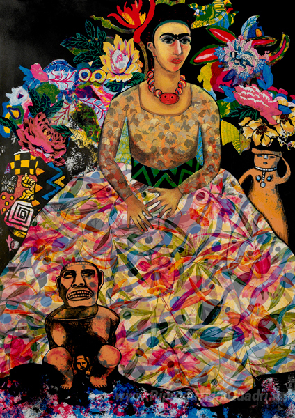 Ti offriamo una riproduzione artigianale su tela dell'opera famosa 'Conservatorio (Frida e Me)' di Miriam Schapiro, dal Museo delle Riproduzioni.