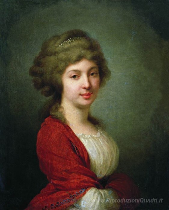 Ti offriamo una riproduzione artigianale su tela dell'opera famosa 'Contessa Vera Zavadovskaya' di Vladimir Borovikovsky, dal Museo delle Riproduzioni.