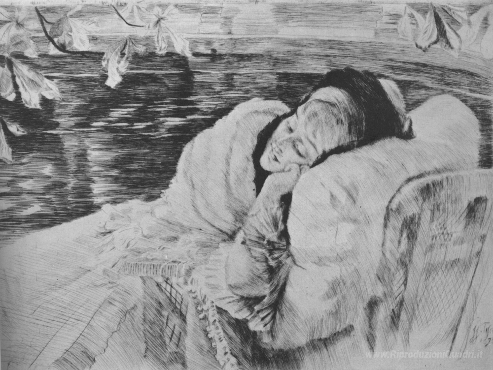 Ti offriamo una riproduzione artigianale su tela dell'opera famosa 'Convalescenza' di James Tissot, dal Museo delle Riproduzioni.