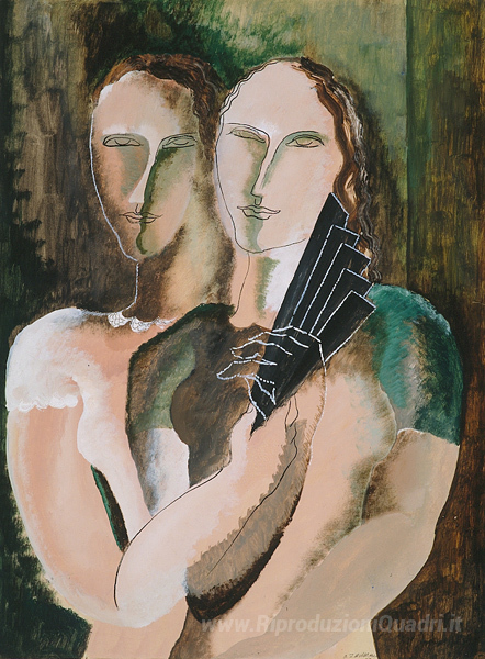 Ti offriamo una riproduzione artigianale su tela dell'opera famosa 'Coppia alla gamma' di Ossip Zadkine, dal Museo delle Riproduzioni.