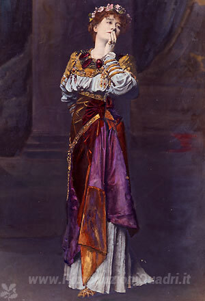 Ti offriamo una riproduzione artigianale su tela dell'opera famosa 'Dame Ellen Terry come Imogen Shakespeare eroina in Cymbeline' di Sir Lawrence Alma-Tadema, dal Museo delle Riproduzioni.