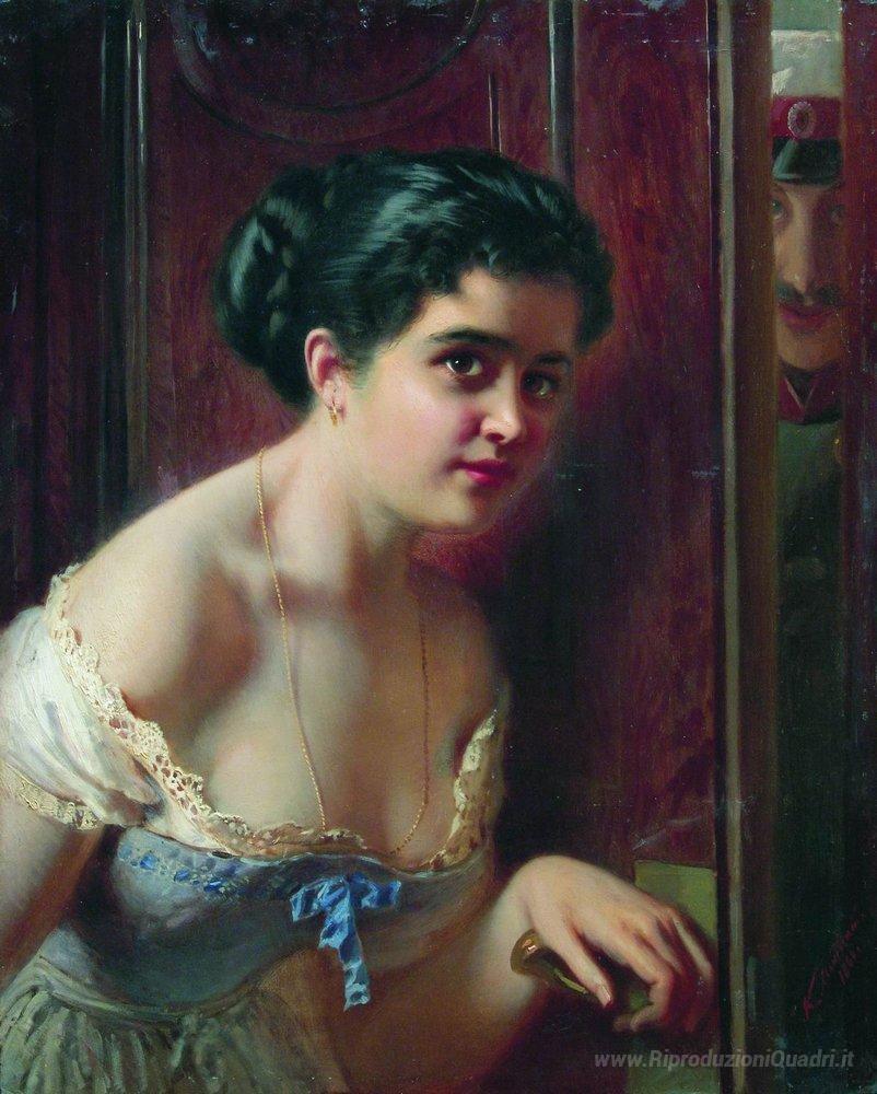 Ti offriamo una riproduzione artigianale su tela dell'opera famosa 'Data' di Konstantin Makovsky, dal Museo delle Riproduzioni.