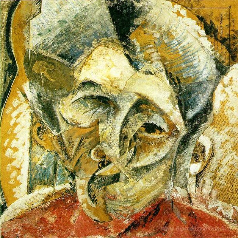 Ti offriamo una riproduzione artigianale su tela dell'opera famosa 'Dinamismo di una testa di donna' di Umberto Boccioni, dal Museo delle Riproduzioni.