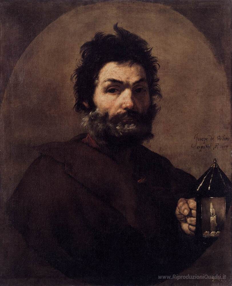Ti offriamo una riproduzione artigianale su tela dell'opera famosa 'Diogene' di Jusepe de Ribera, dal Museo delle Riproduzioni.