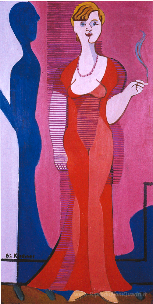 Ti offriamo una riproduzione artigianale su tela dell'opera famosa 'Donna bionda in un vestito rosso, Ritratto di Elisabetta Hembus' di Ernst Ludwig Kirchner, dal Museo delle Riproduzioni.