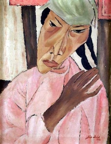 Ti offriamo una riproduzione artigianale su tela dell'opera famosa 'Donna con le trecce (yemenita)' di Jean David, dal Museo delle Riproduzioni.