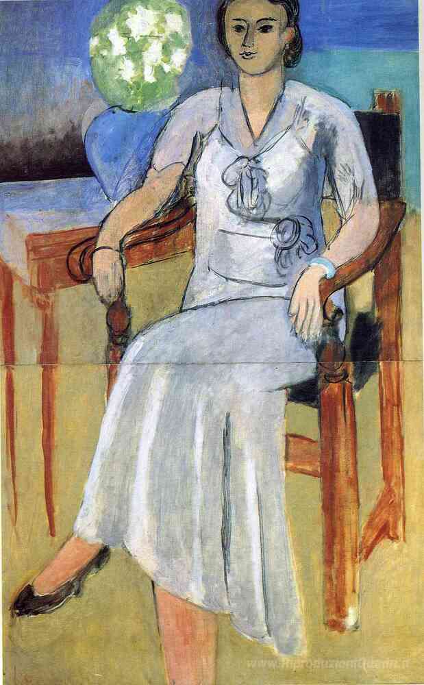 Ti offriamo una riproduzione artigianale su tela dell'opera famosa 'Donna con un abito bianco' di Henri Matisse, dal Museo delle Riproduzioni.