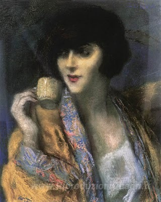 Ti offriamo una riproduzione artigianale su tela dell'opera famosa 'Donna con una tazza cinese' di Jozsef Rippl-Ronai, dal Museo delle Riproduzioni.