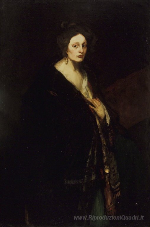 Ti offriamo una riproduzione artigianale su tela dell'opera famosa 'Donna in Manteau' di Robert Henri, dal Museo delle Riproduzioni.