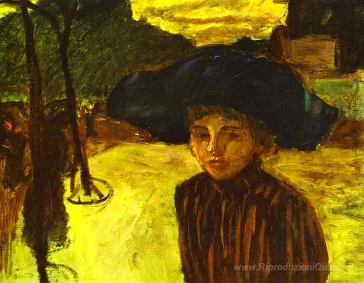 Ti offriamo una riproduzione artigianale su tela dell'opera famosa 'Donna in un cappello blu' di Pierre Bonnard, dal Museo delle Riproduzioni.