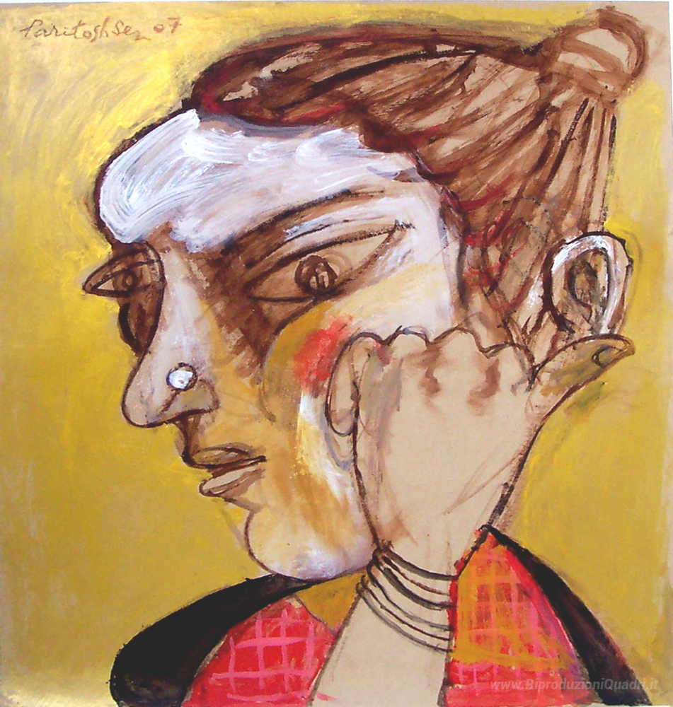 Ti offriamo una riproduzione artigianale su tela dell'opera famosa 'Donna' di Paritosh Sen, dal Museo delle Riproduzioni.