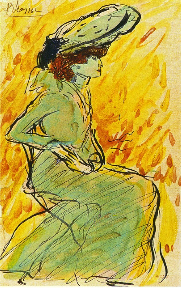Ti offriamo una riproduzione artigianale su tela dell'opera famosa 'Donna seduta in verde' di Pablo Picasso, dal Museo delle Riproduzioni.