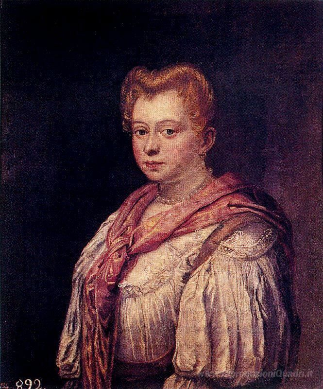 Ti offriamo una riproduzione artigianale su tela dell'opera famosa 'Donna veneziana (attribuito)' di Marietta Robusti, dal Museo delle Riproduzioni.