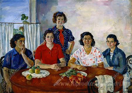 Ti offriamo una riproduzione artigianale su tela dell'opera famosa 'Donne spagnole' di Pyotr Konchalovsky, dal Museo delle Riproduzioni.