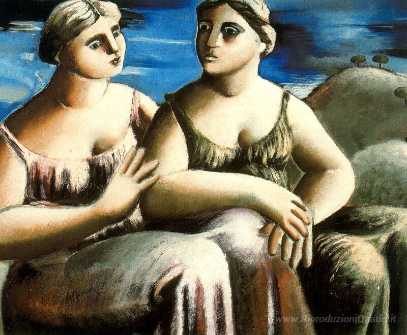 Ti offriamo una riproduzione artigianale su tela dell'opera famosa 'Due donne sedute' di Rafael Zabaleta, dal Museo delle Riproduzioni.