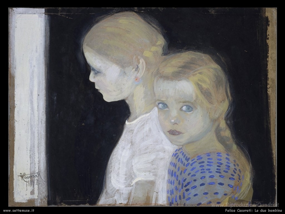 Ti offriamo una riproduzione artigianale su tela dell'opera famosa 'Due ragazze' di Felice Casorati, dal Museo delle Riproduzioni.