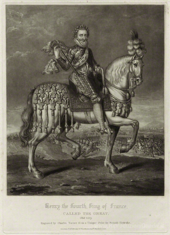 Ti offriamo una riproduzione artigianale su tela dell'opera famosa 'Enrico IV, re di Francia' di Charles Turner, dal Museo delle Riproduzioni.