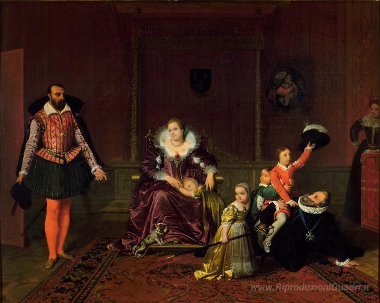 Ti offriamo una riproduzione artigianale su tela dell'opera famosa 'Enrico IV Recieving L'Ambasciatore di Spagna' di Jean Auguste Dominique Ingres, dal Museo delle Riproduzioni.