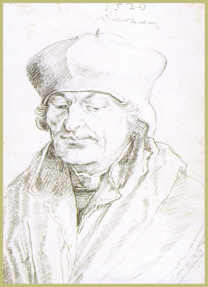 Ti offriamo una riproduzione artigianale su tela dell'opera famosa 'Erasmo De Rotterdam' di Albrecht Durer, dal Museo delle Riproduzioni.