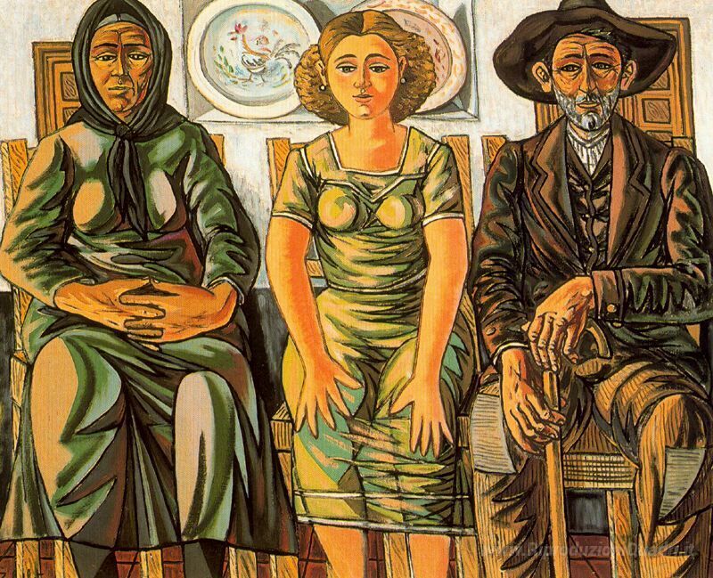 Ti offriamo una riproduzione artigianale su tela dell'opera famosa 'Famiglia contadina' di Rafael Zabaleta, dal Museo delle Riproduzioni.