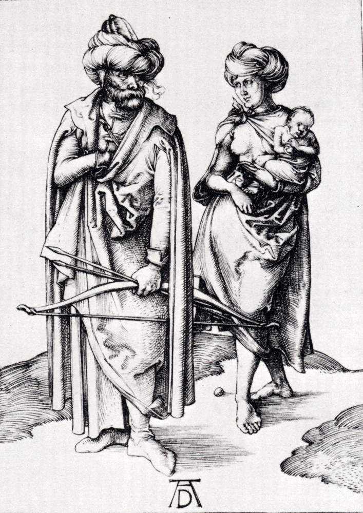Ti offriamo una riproduzione artigianale su tela dell'opera famosa 'Famiglia orientale' di Albrecht Durer, dal Museo delle Riproduzioni.