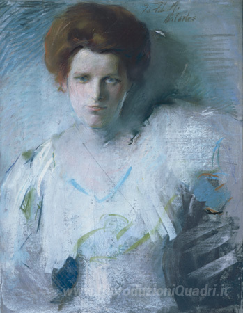 Ti offriamo una riproduzione artigianale su tela dell'opera famosa 'Frances Metzger Occidente' di Arthur Beecher Carles, dal Museo delle Riproduzioni.