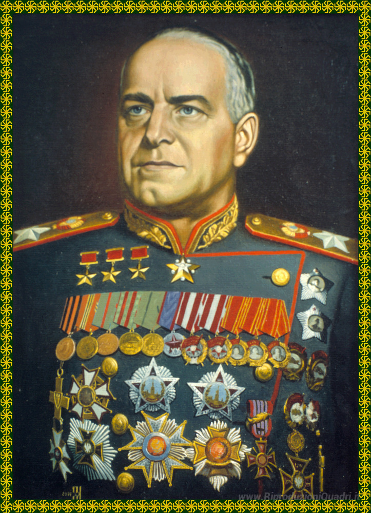 Ti offriamo una riproduzione artigianale su tela dell'opera famosa 'Georgy Zhukov' di Konstantin Vasilyev, dal Museo delle Riproduzioni.