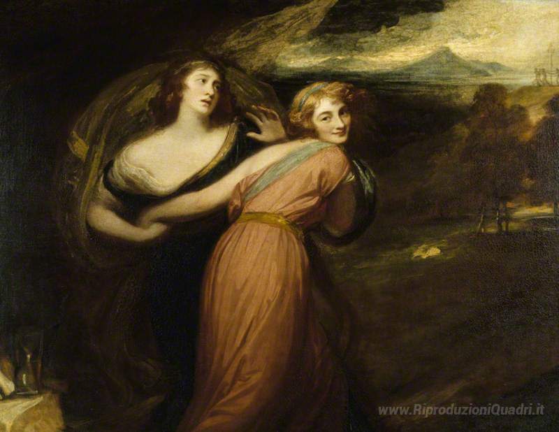 Ti offriamo una riproduzione artigianale su tela dell'opera famosa 'Gioia e malinconia (Miss Wallis, dopo la signora James Campbell)' di George Romney, dal Museo delle Riproduzioni.