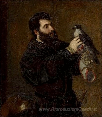 Ti offriamo una riproduzione artigianale su tela dell'opera famosa 'Giorgio Cornaro con un Falcon' di Titian, dal Museo delle Riproduzioni.