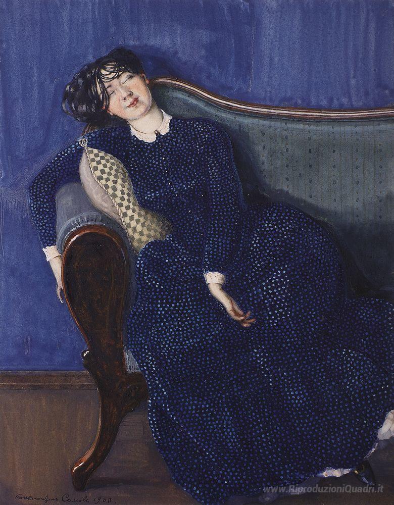 Ti offriamo una riproduzione artigianale su tela dell'opera famosa 'Giovane donna. Addormentato' di Konstantin Somov, dal Museo delle Riproduzioni.