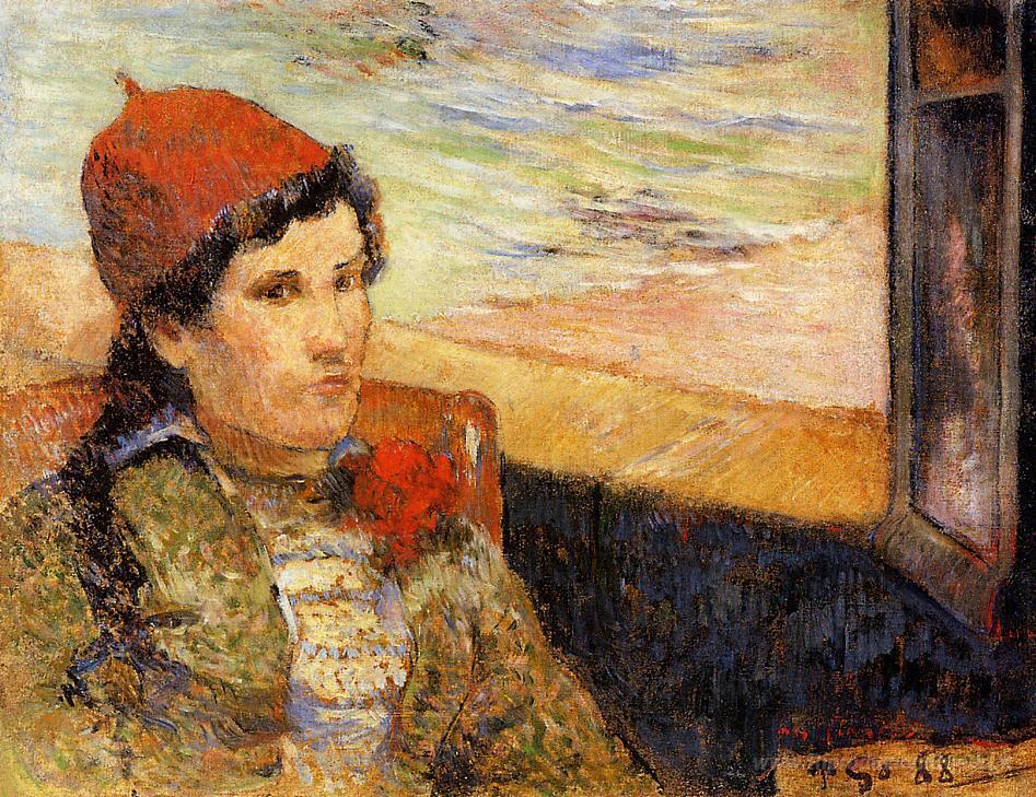 Ti offriamo una riproduzione artigianale su tela dell'opera famosa 'Giovane donna alla finestra' di Paul Gauguin, dal Museo delle Riproduzioni.