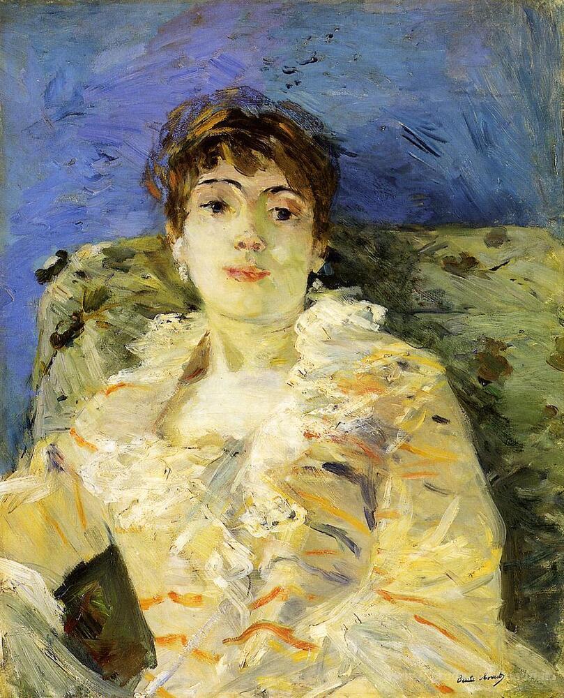 Ti offriamo una riproduzione artigianale su tela dell'opera famosa 'Giovane donna su un divano' di Berthe Morisot, dal Museo delle Riproduzioni.
