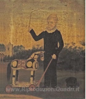 Ti offriamo una riproduzione artigianale su tela dell'opera famosa 'Giovane ragazzo con Cavallo Giocattolo' di John Bradley, dal Museo delle Riproduzioni.
