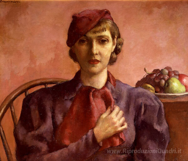 Ti offriamo una riproduzione artigianale su tela dell'opera famosa 'Giovane signora del 1933' di Robert Brackman, dal Museo delle Riproduzioni.