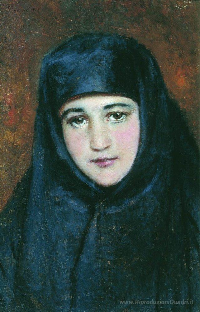 Ti offriamo una riproduzione artigianale su tela dell'opera famosa 'Giovane suora' di Konstantin Makovsky, dal Museo delle Riproduzioni.