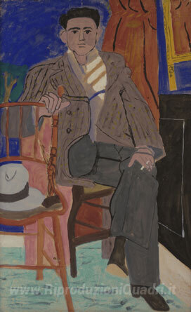 Ti offriamo una riproduzione artigianale su tela dell'opera famosa 'Giovani dai capelli scuri seduto, con un soprabito' di Yiannis Tsaroychis, dal Museo delle Riproduzioni.