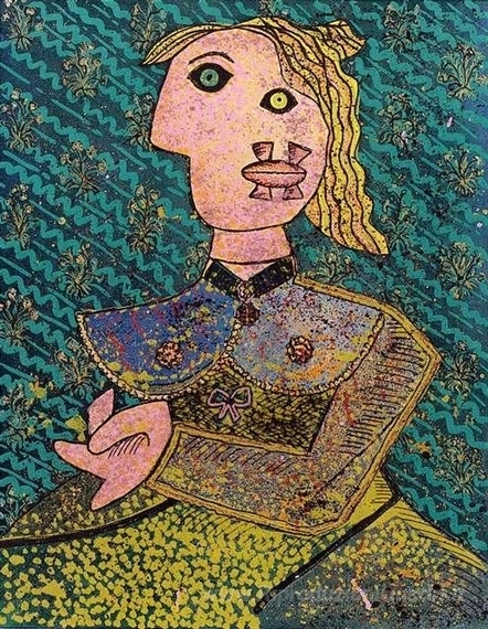 Ti offriamo una riproduzione artigianale su tela dell'opera famosa 'Hommage à Picasso' di Enrico Baj, dal Museo delle Riproduzioni.