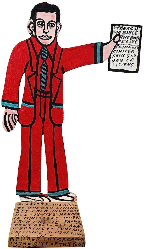 Ti offriamo una riproduzione artigianale su tela dell'opera famosa 'Howard e Il Libro della Vita' di Howard Finster, dal Museo delle Riproduzioni.
