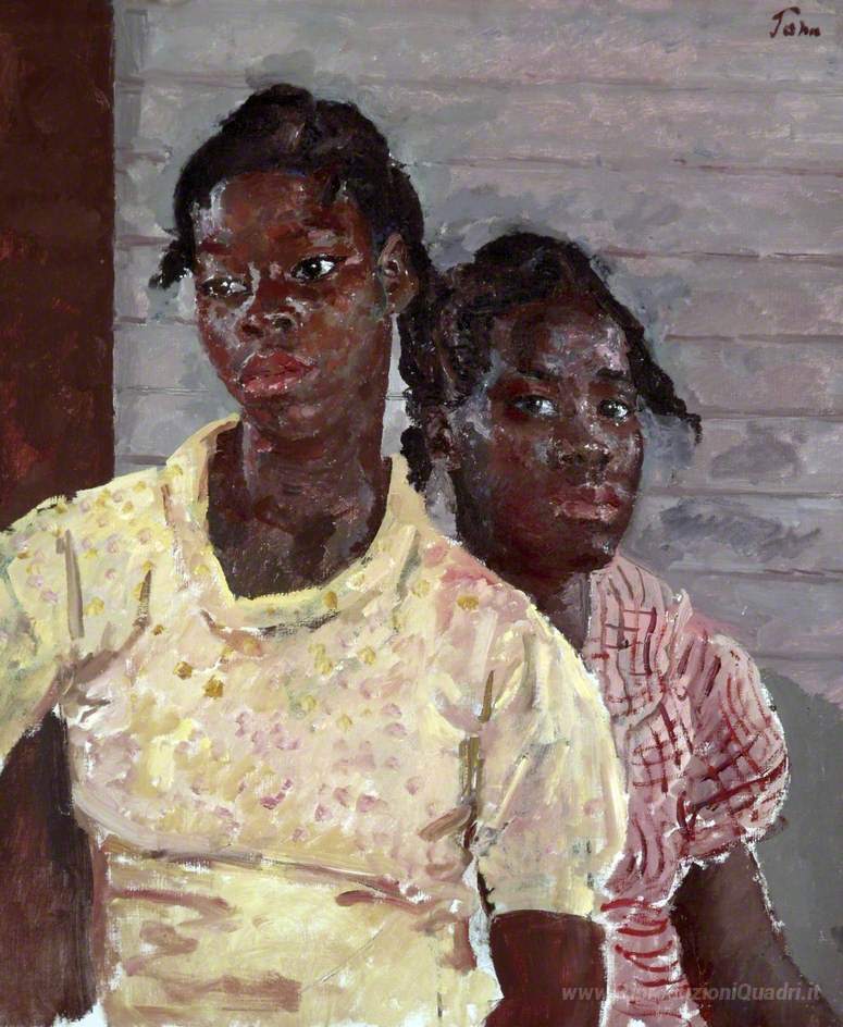 Ti offriamo una riproduzione artigianale su tela dell'opera famosa 'I due giamaicani Ragazze' di Augustus John, dal Museo delle Riproduzioni.