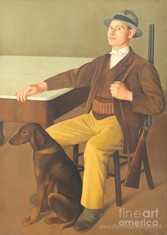 Ti offriamo una riproduzione artigianale su tela dell'opera famosa 'Il cacciatore' di Antonio Donghi, dal Museo delle Riproduzioni.