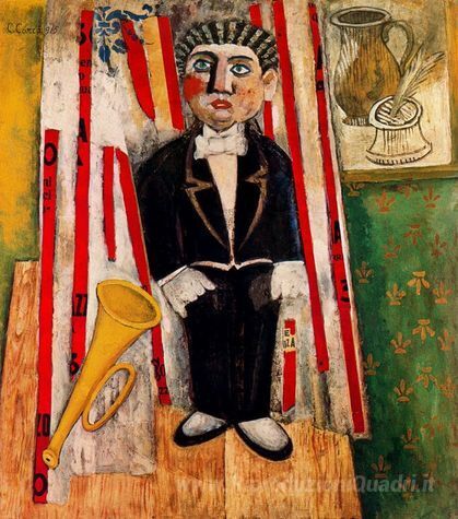 Ti offriamo una riproduzione artigianale su tela dell'opera famosa 'Il Fanciullo Prodigio' di Carlo Carra, dal Museo delle Riproduzioni.